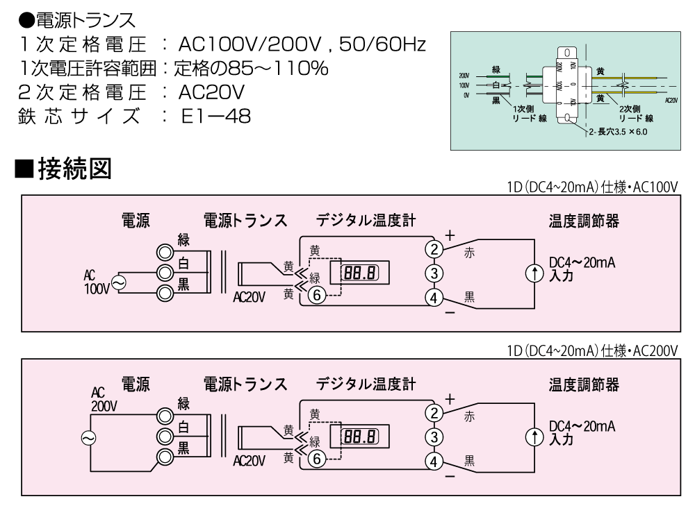 【センサ入力】測温抵抗体Pt100Ω 3線式 【仕様】角型、3ケタ表示